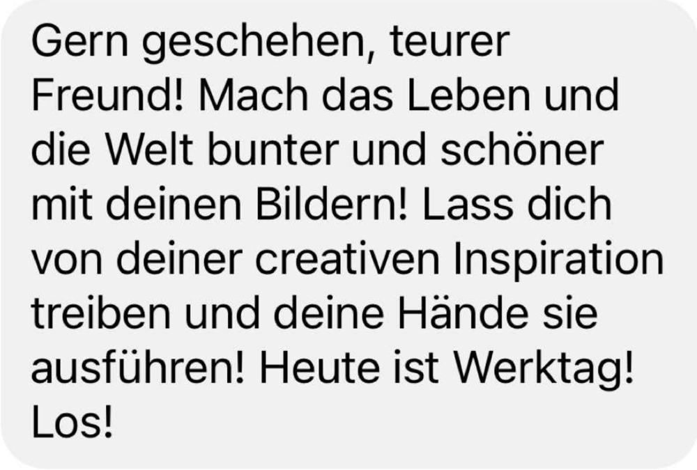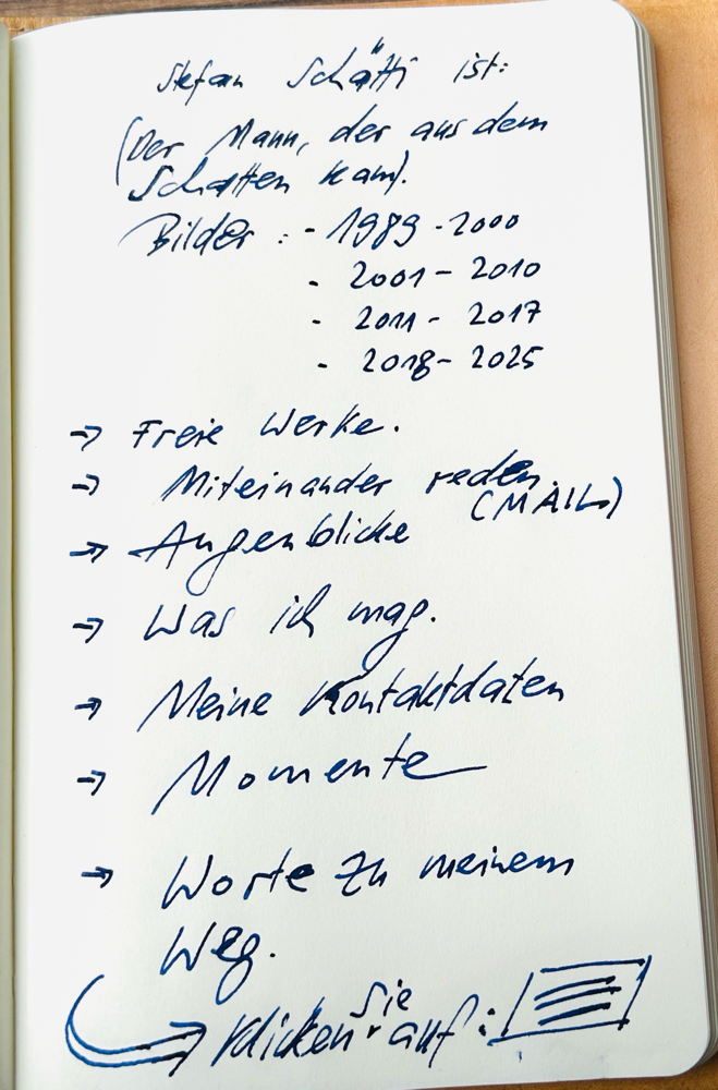 Seit 1989 bin ich „Créatif“ unterwegs und es ist ein erfüllender Weg. Ich danke allen, die mich als Mensch und/oder Bildbesitzer von einem oder mehreren Schätti-Werk/en begleiten + meinem Tun